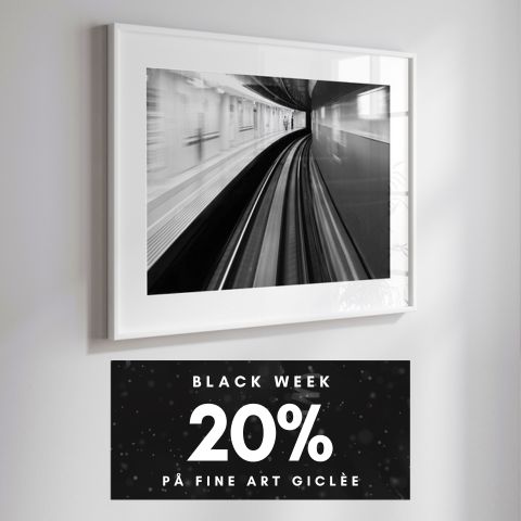 Med Fine Art Giclée print får du enestående gengivelser af farver og detaljer, dybe sorte toner og slående kontraster og netop nu får du hele 20% rabat på vores Fine Art Giclée print.